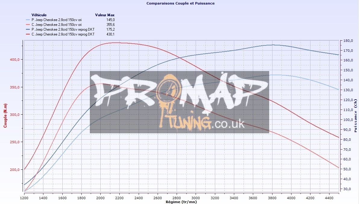 The Power Lab is leading in the development of Jeep Cherokee 2.8 CRD 150hp tuning files. The development of each Jeep Cherokee 2.8 CRD 150hp tuning file is the result of perfection and dedication by The Power Lab team. The organization only uses the latest technologies and has many years experience in ECU remapping software. Many (chiptuning) organizations around the globe download their tuning files for Jeep Cherokee 2.8 CRD 150hp at The Power Lab for the best possible result. All Jeep Cherokee 2.8 CRD 150hp tuning files deliver the best possible performance and results within the safety margins.